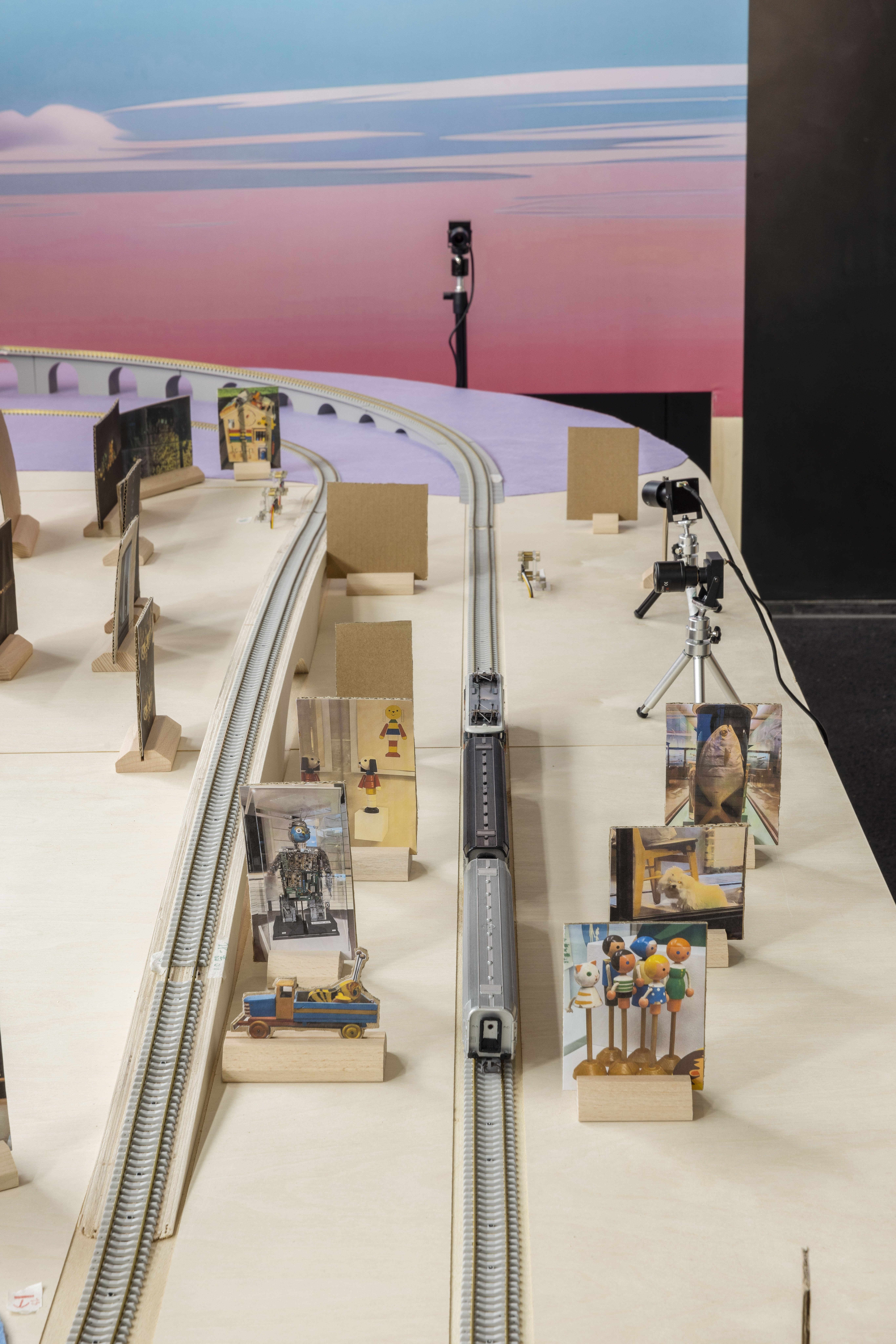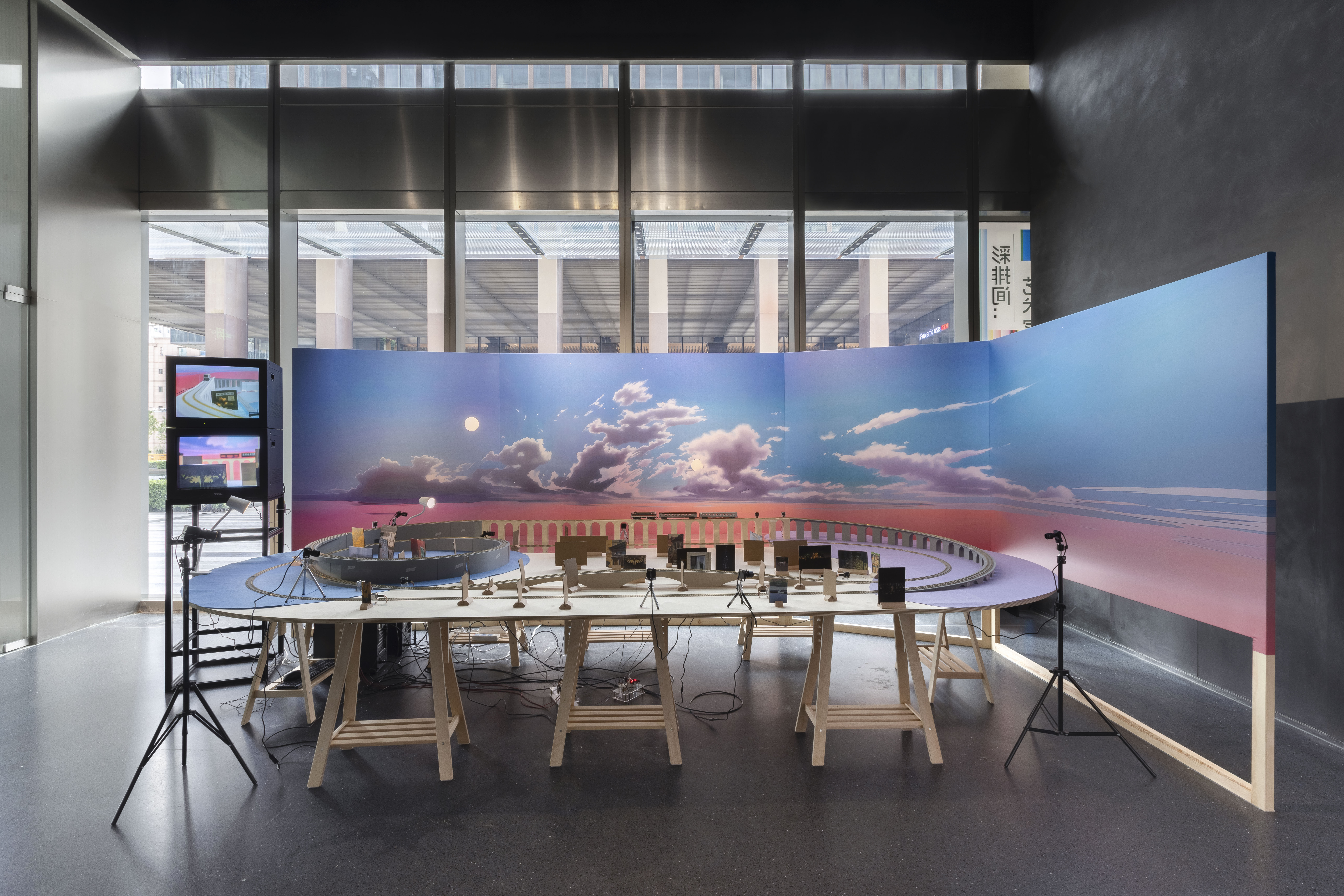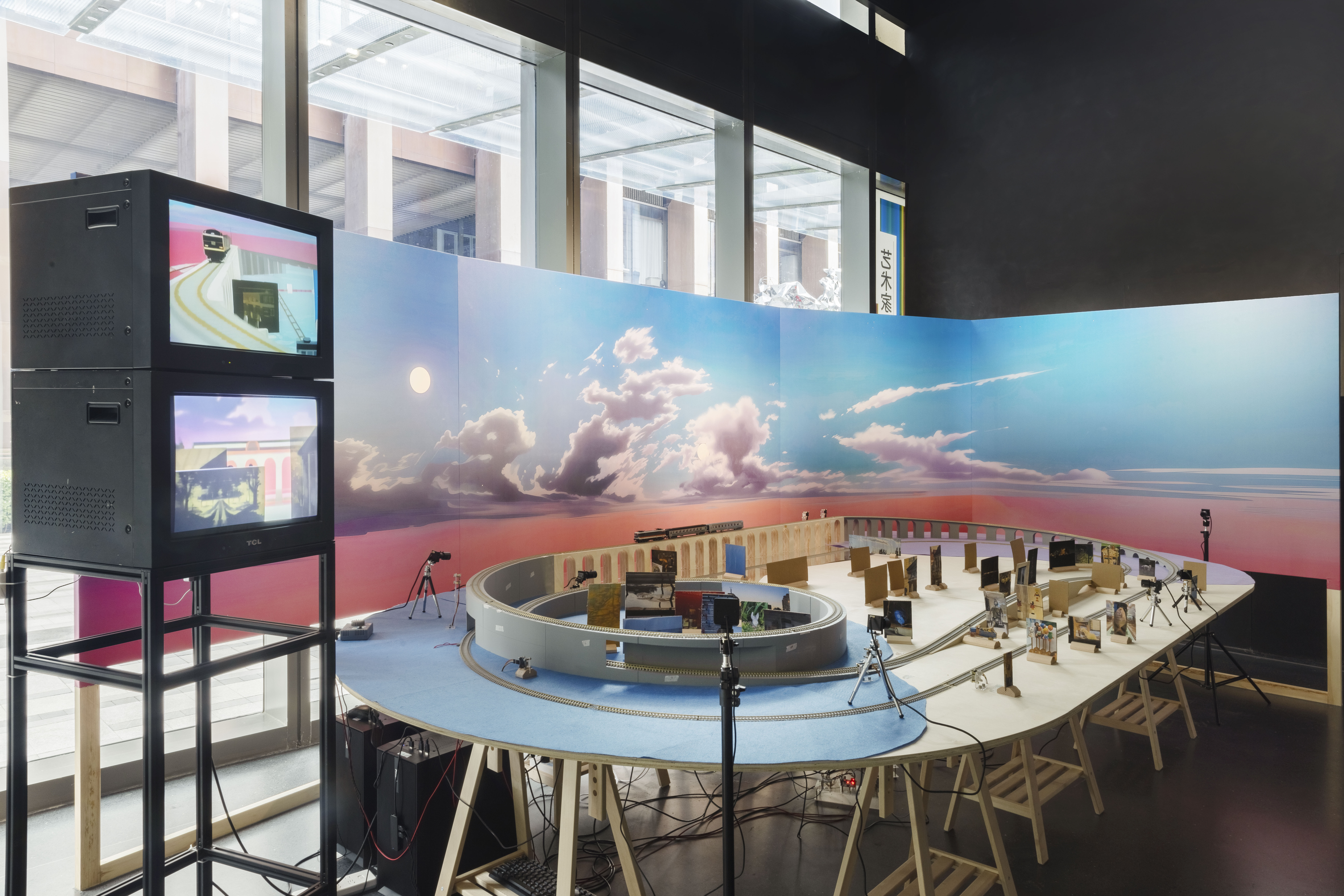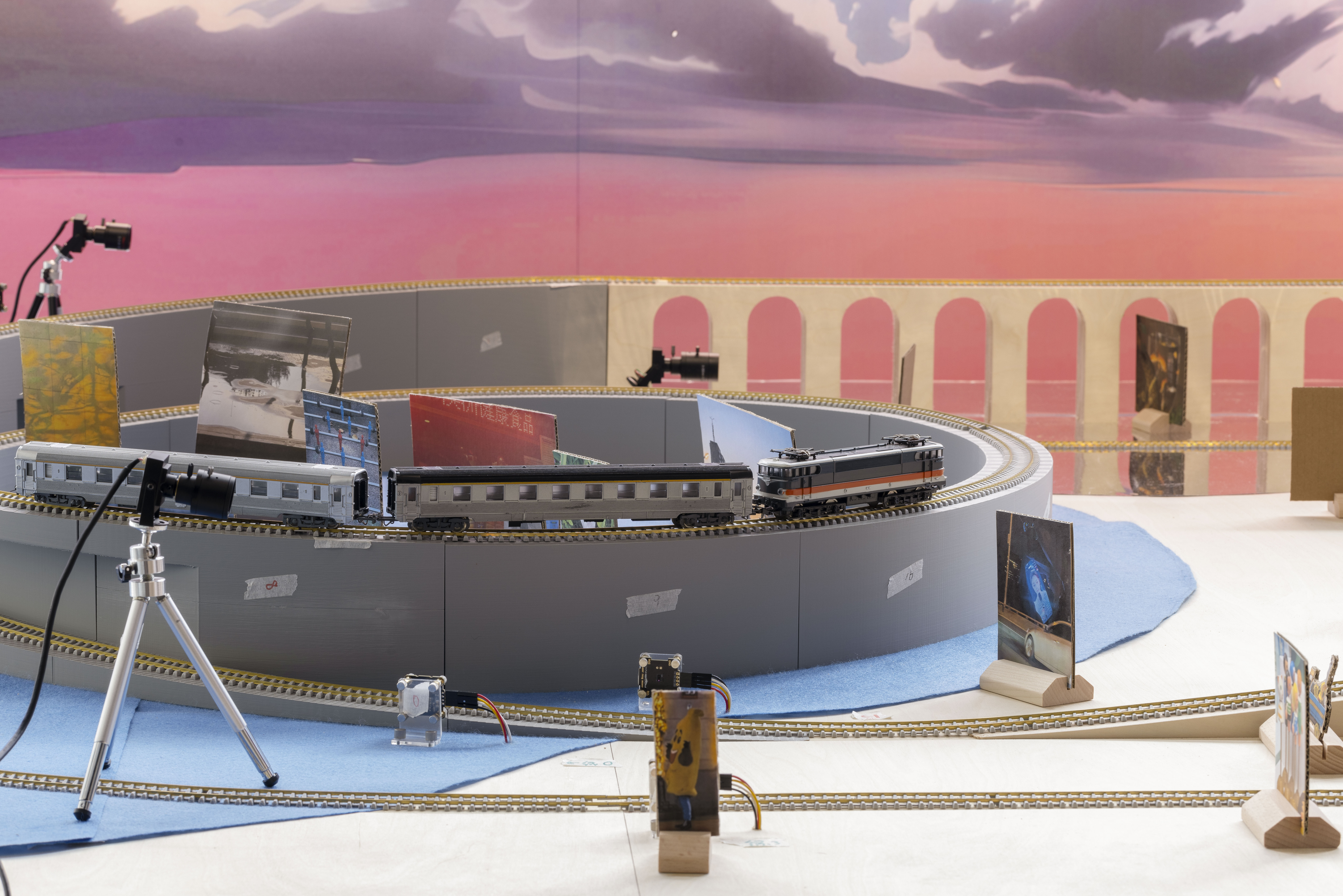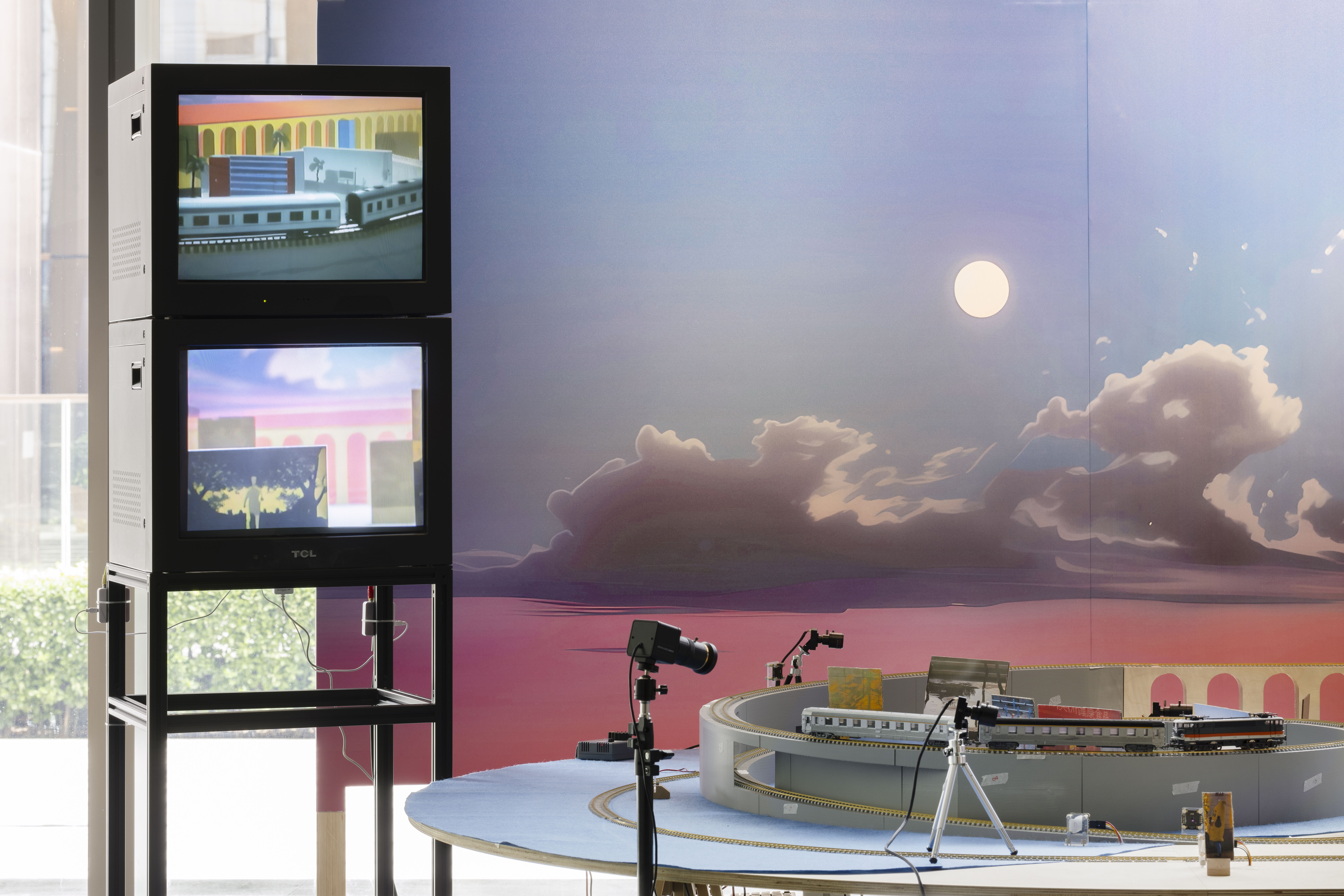 “Tweening”-the animation step of filling in frames between key images-is seen by Gao Wenqian as a way to think about time. In Potemkin Village, he turns a Russian reference into a sandbox installation that “feeds” images to Al. With playful intent, he inserts a looping “image of time” into the machine, letting it gradually break from his design and slip out of the loop.