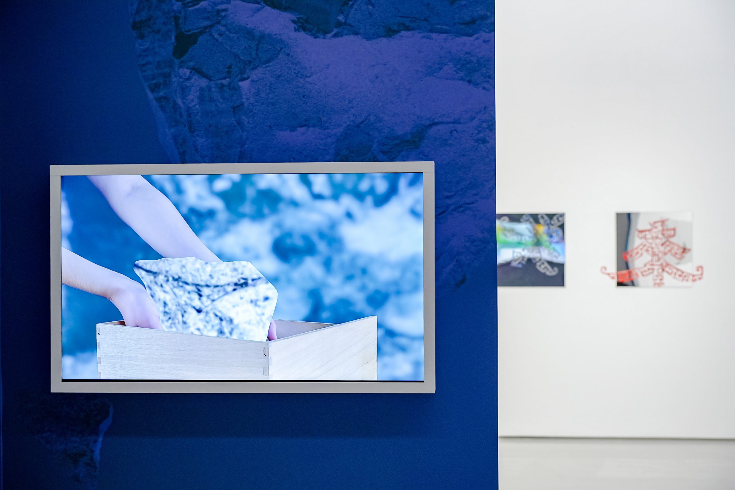 The exhibits imply the philosophy of “recursion”, including easel paintings, videos, photos, sculptures, installations, calligraphy works, etc. Tang Han’s video ∞ Container attempts to turn heavy stones into light substances. She edits the process of packaging stones with a box into a seamless loop scene and empties the stones into a negative border that carries the base image. Zhou Tao’s The Axis of Big Data captured the scenery around a data center in Guizhou, with the camera’s lens and the naked eye hovering like ghosts, secretly switching over time. It is a visual expression of the “continuity of opposition”. The viewing angle switching is also reflected in Yu Youhan’s painting, Wang Xu’s installation, and Tong Yi Xin’s video.